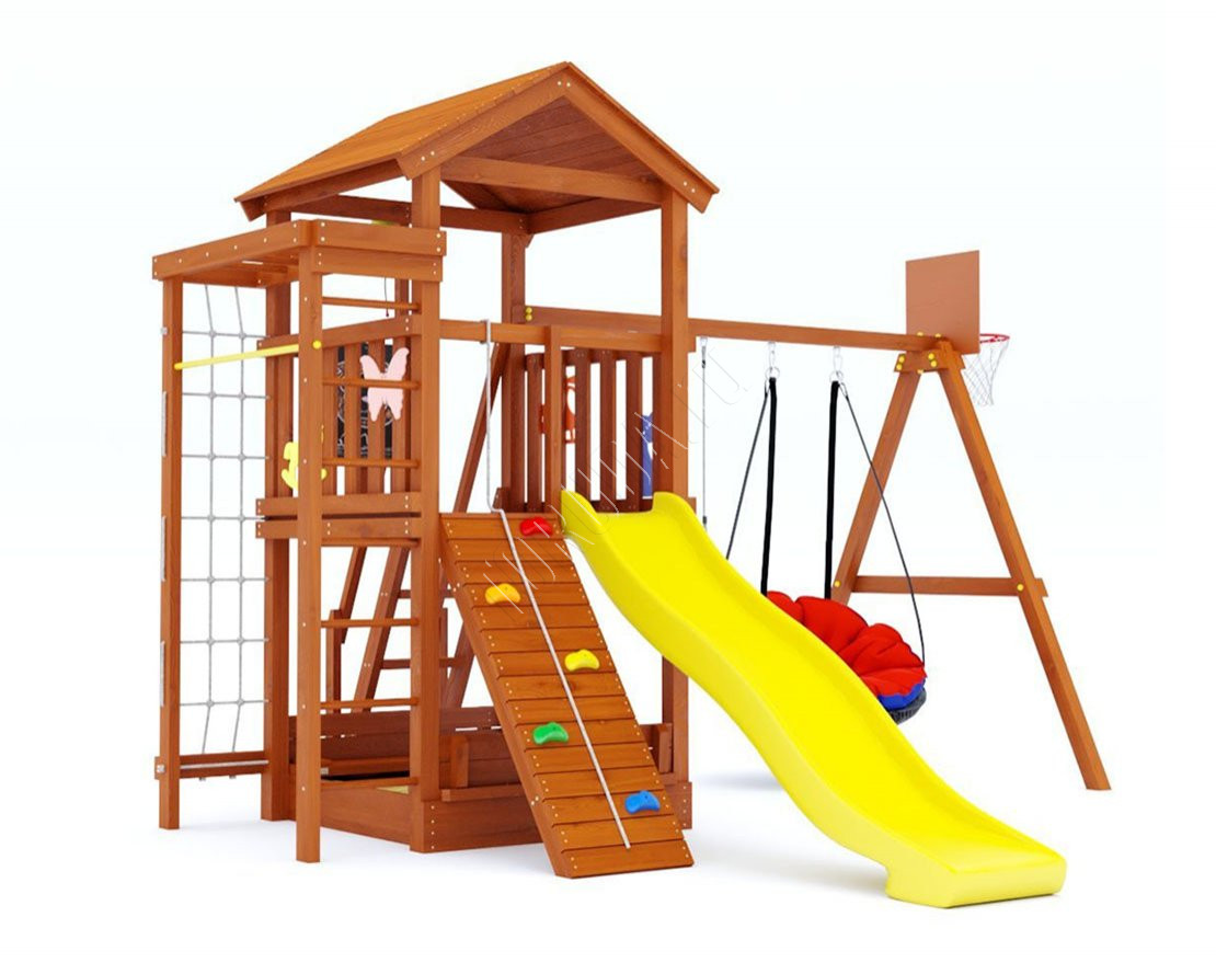 Гарда 5 Вайлэнд площадка вмещает несколько детей дошкольного и младшего школьного возраста. Удобное размещение – участок дачного дома. Ее легко собрать самостоятельно, можно заказать сборку.