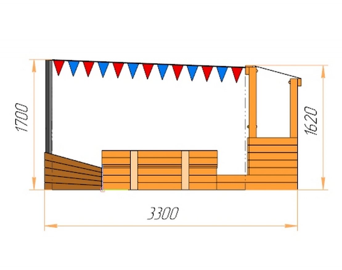 Габариты песочницы: 1500 мм х 1500 мм х 285 мм.